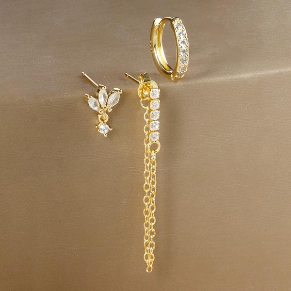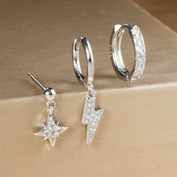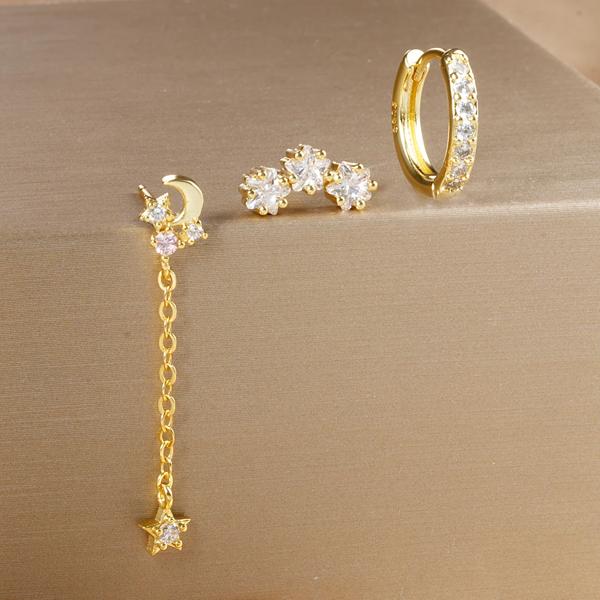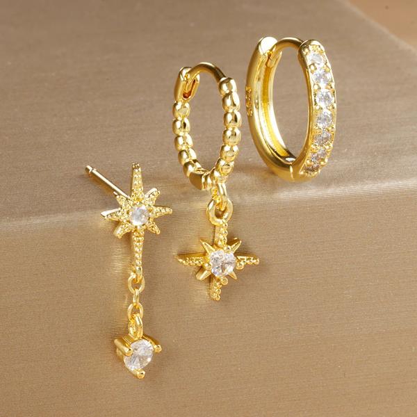 3 個の高級スターペンダントピアスイヤリングセット女性のためのステンレス鋼ジルコンパンク耳スタッドイヤリングレディジュエリー aretes