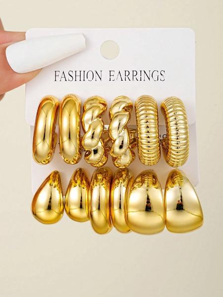 12 ピース/セットクラシックファッションツイスト C シェイプティアドロップデザイン女性のゴールドカラーのイヤリング毎日の職場やパーティーの服装 2024