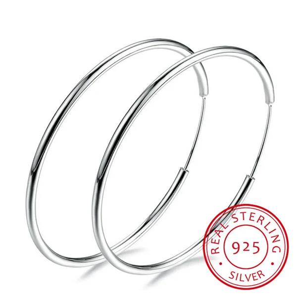 女性 100% 925 スターリングシルバーフープイヤリングラウンドサークルループギフトボックス梱包シンプルなシルバーフープイヤリングピアス