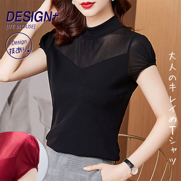 送料無料 半袖 Tシャツ レディース トップス レース ストレッチ シースルー オーバーサイズ シンプル 快適 体型カバー 夏 コットン 汗染み防止