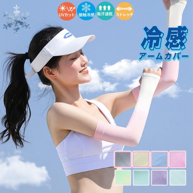 アームカバー レディース 冷感 UV対策 指穴付き グラデーションカラー 紫外線対策 接触冷感 UVケア ロング 日焼け対策 腕カバー uvカット遮光