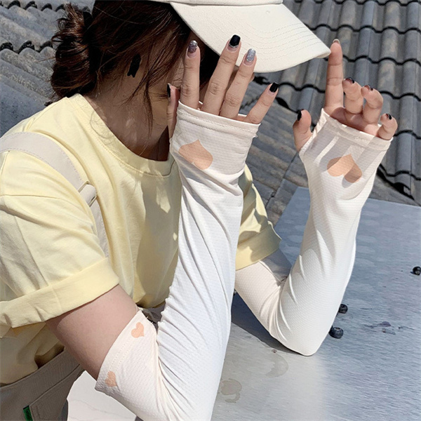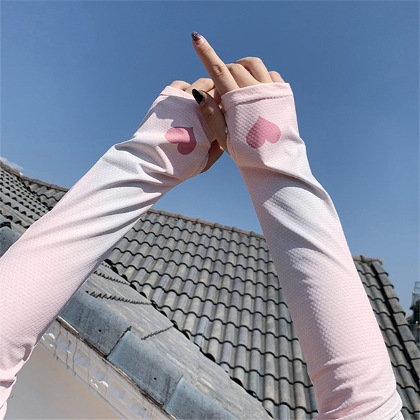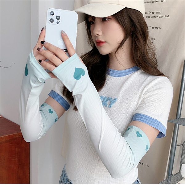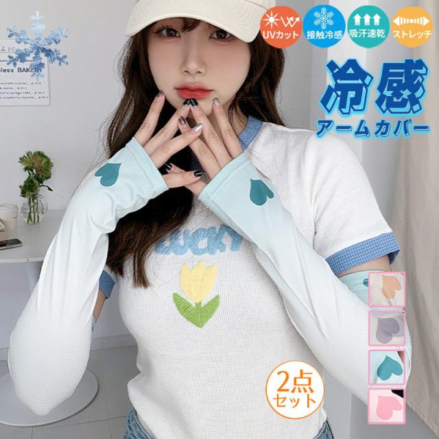 アームカバースポーツ レディース UVカット 2点セット グラデーションカラー 心柄 UV手袋 冷感 日焼け対策 ロング 夏 腕 紫外線 自転車