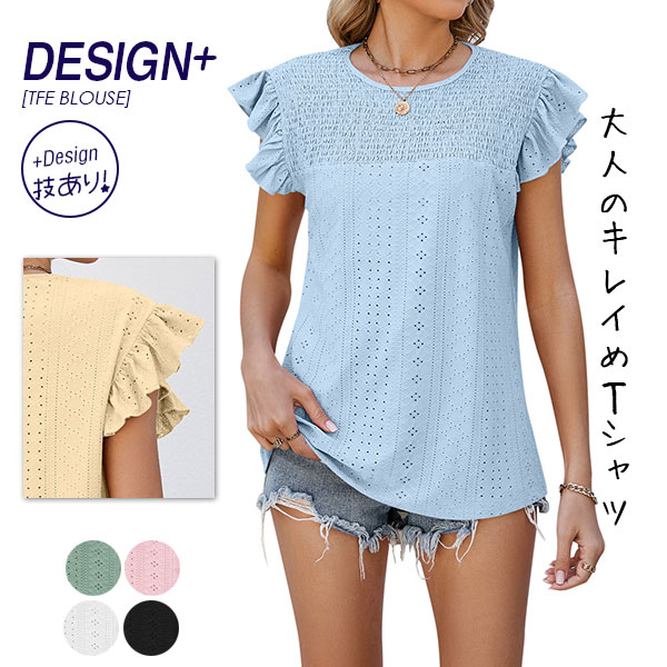 春新作 大きいサイズ レディース トップス tシャツ 無地 透かし彫り 半袖 Tシャツ カジュアル ビッグサイズ オーバーサイズTシャツ 春服