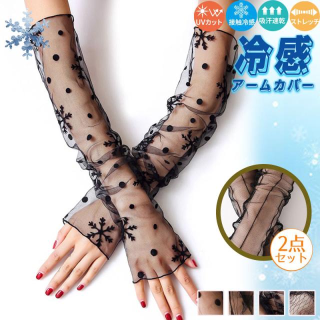 アームカバー UVカット 2点セット 涼感 日焼け止め レース 無地 接触冷感 ゆったり ロング おしゃれ レディース クール 涼しい 夏用 ひんやり