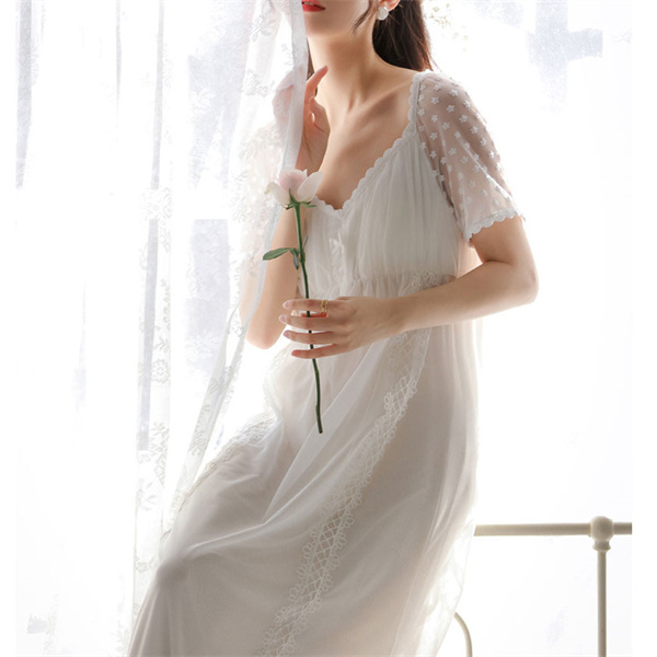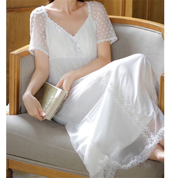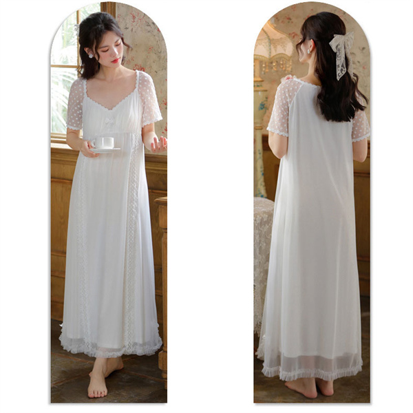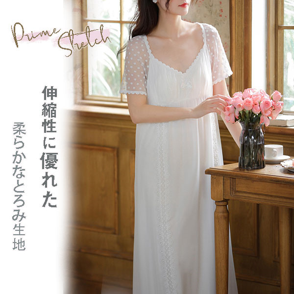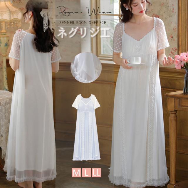 ルームウェア 半袖 レース 姫系 レディース フリル ネグリジェ ワンピース 夏 パジャマ ロング丈 体型カバー 部屋着 涼しい おしゃれ シンプル
