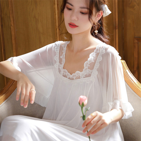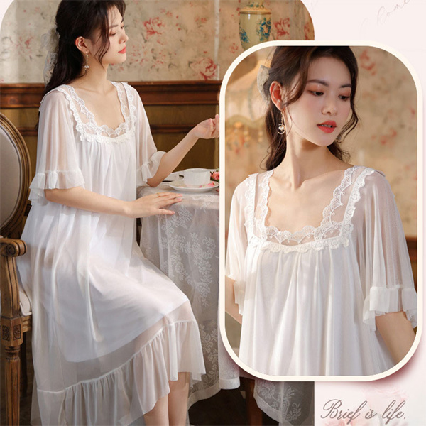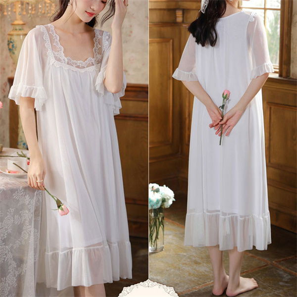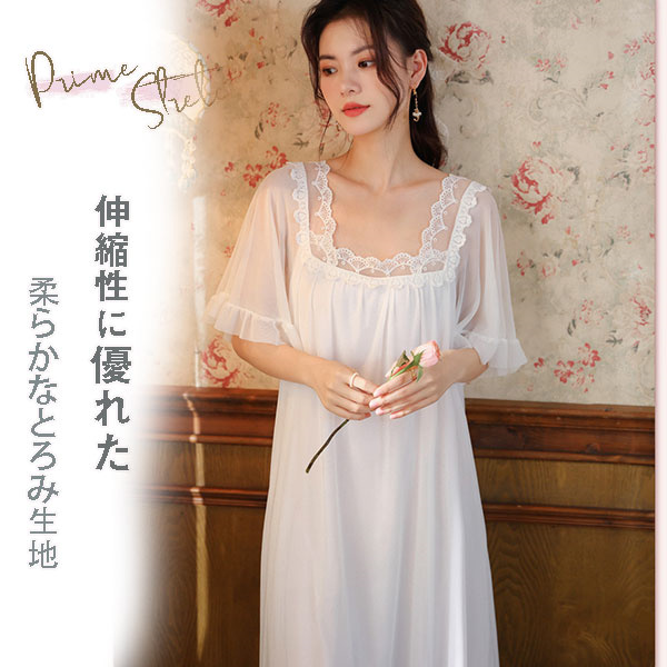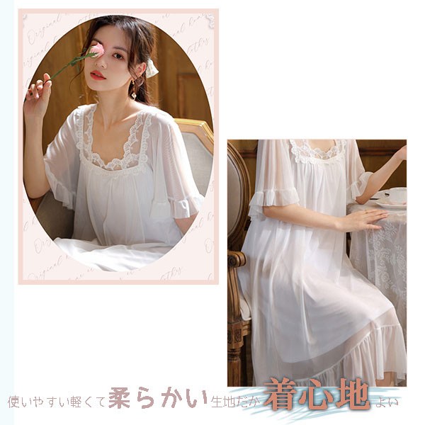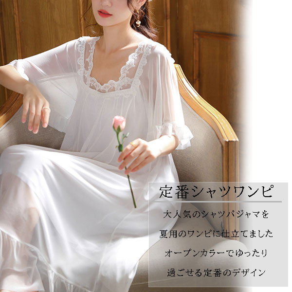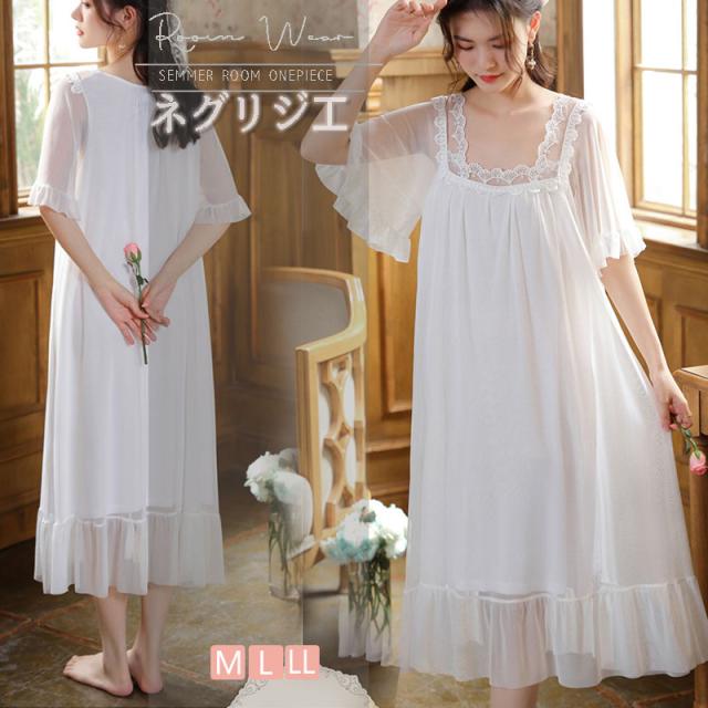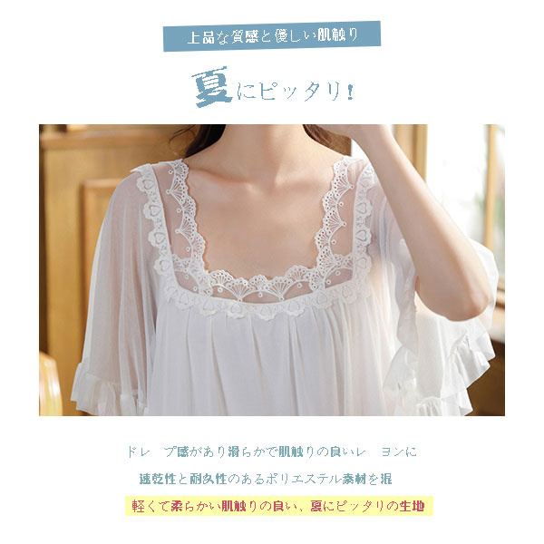 ネグリジェ ワンピース レース レディース 半袖 ルームウェア ロング丈 部屋着 パジャマ ゆったり 体型カバー 寝着 柔らかめ 夏 シンプル 涼しい