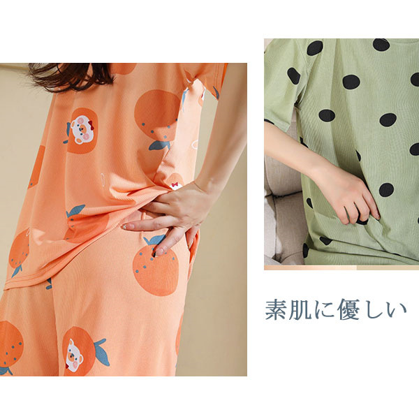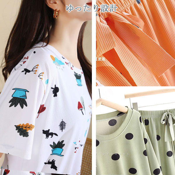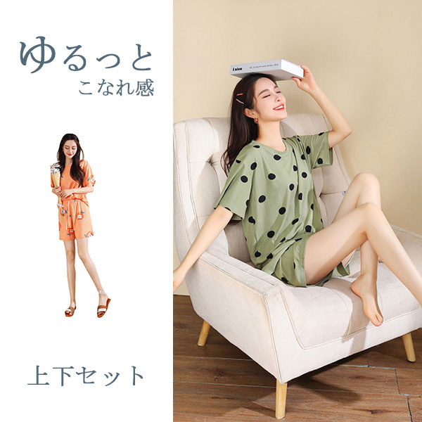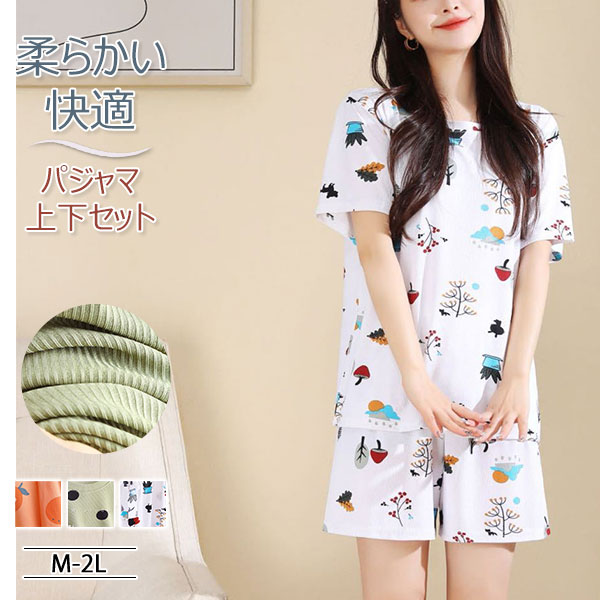 パジャマ 春夏 半袖 レディース 上下セット ゆったり ルームウェア ショートパンツ フルーツ柄 セットアップ ナイトウェア お洒落 部屋着
