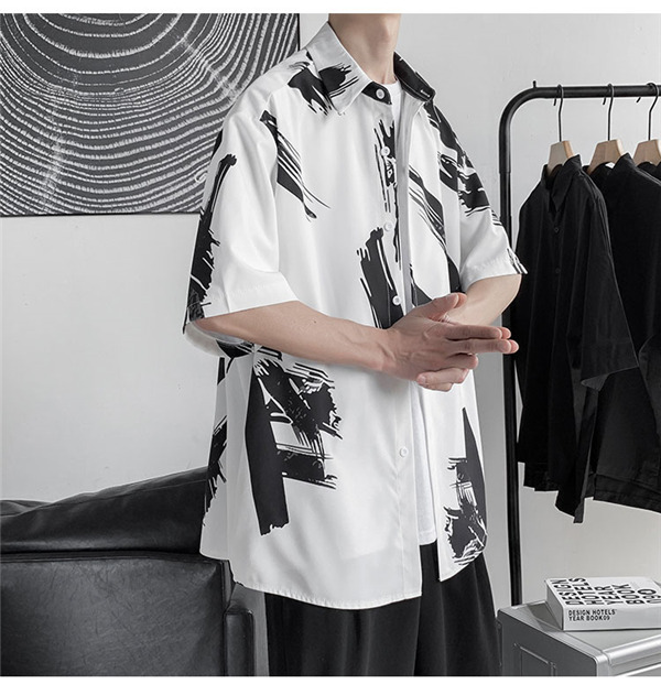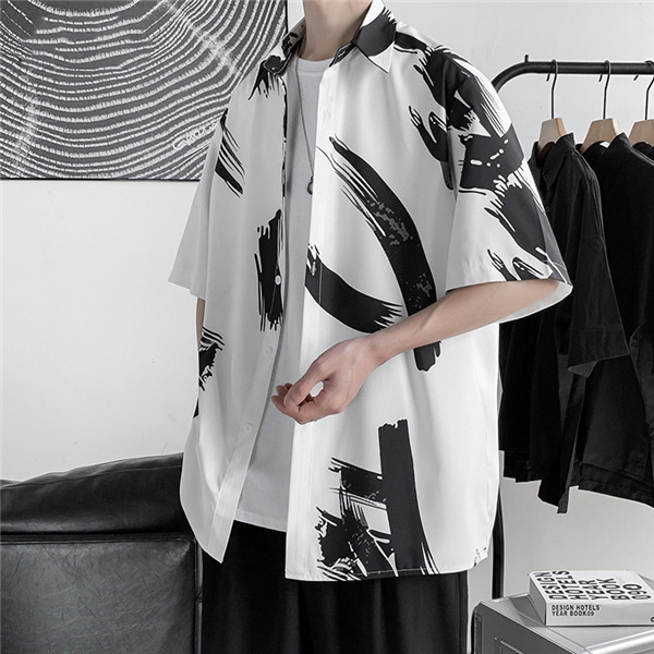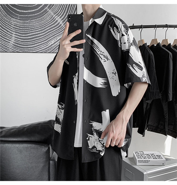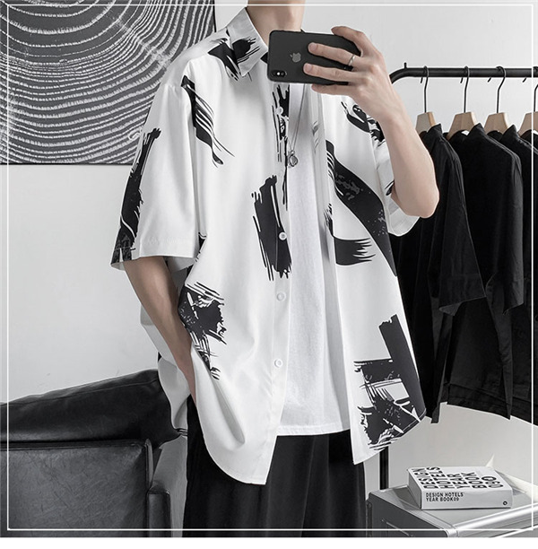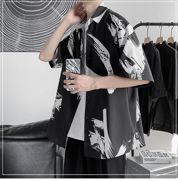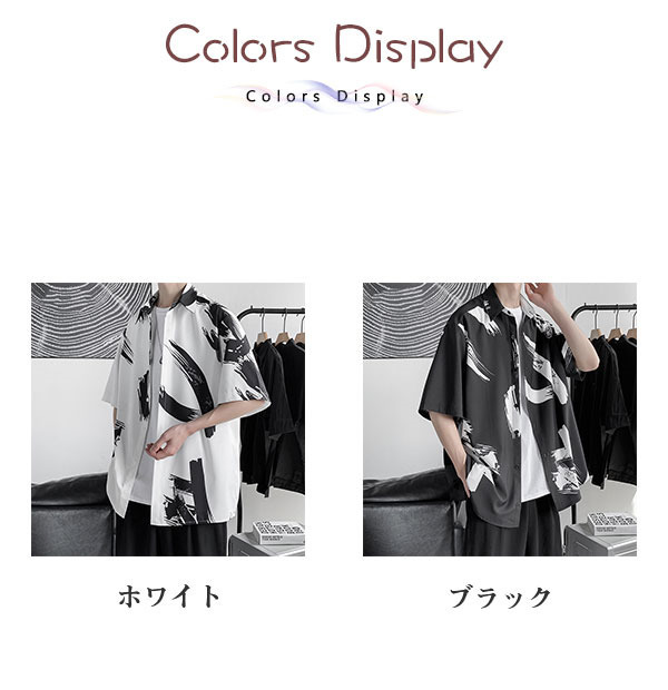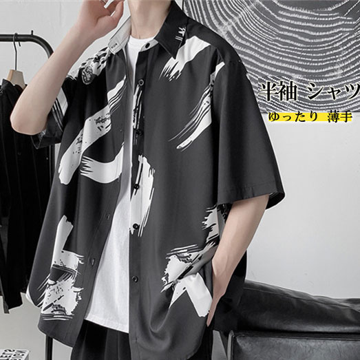 送料無料 シャツ メンズ おしゃれ 半袖 夏 カジュアル 大きめ ビッグシルエット オーバーサイズ オープンカラー 開襟 無地 トップス