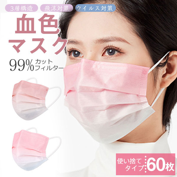 マスク 小顔 60枚 不織布 やわらか 小さめ 3D 4D ファッション バイカラー プレミアム 3層 フィット 美人 血色マスク 蒸れない 快適