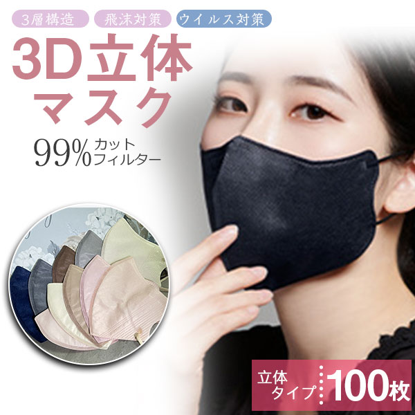 3Dマスク マスク 不織布 立体マスク バイカラーマスク 不織布マスク 100枚 不織布 血色マスク カラー マスク 立体 使い捨て 小顔