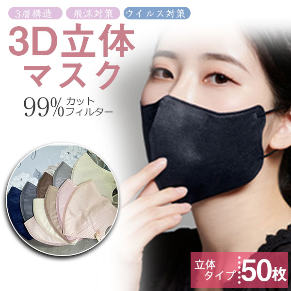 3Dマスク マスク 不織布 立体マスク バイカラーマスク 不織布マスク 50枚 不織布 血色マスク カラー マスク 立体 使い捨て 小顔