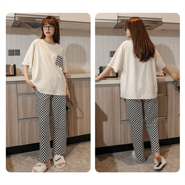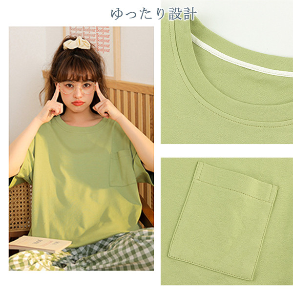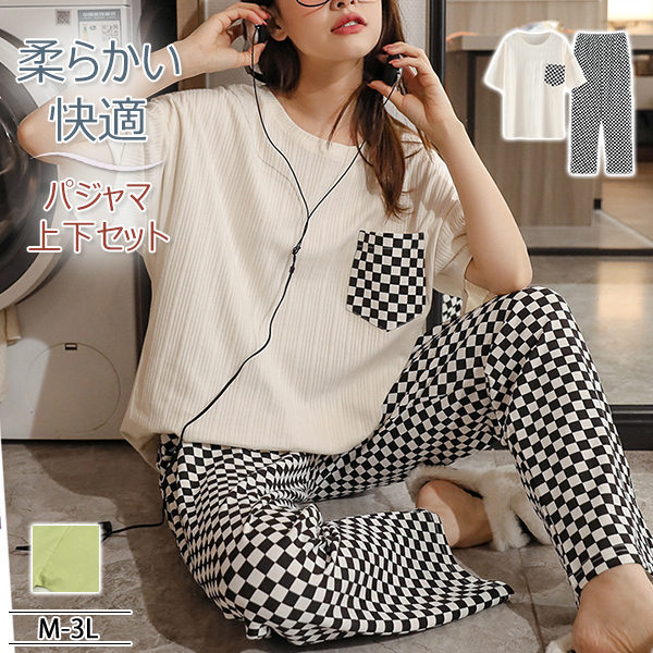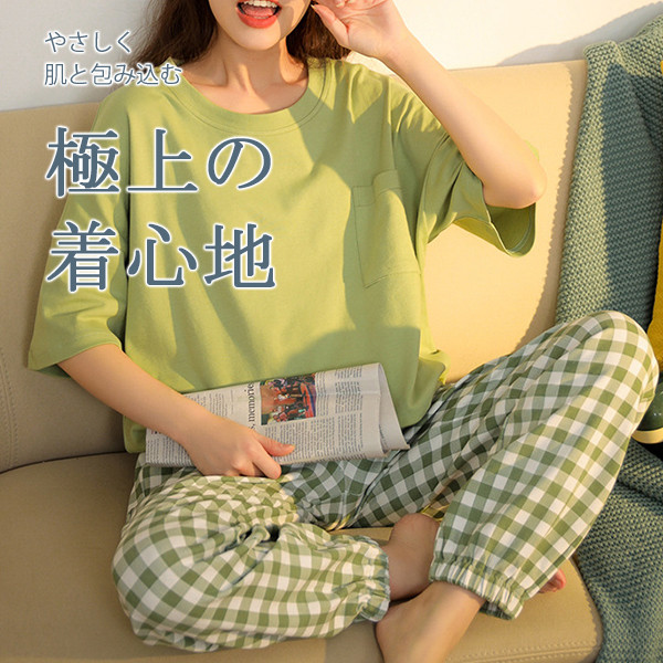 パジャマ 半袖 レディース ルームウェア チェック 部屋着 リラックスウェア 2点セット 上下セット ロングパンツ 寝巻き 春 女性 母の日 ギフト