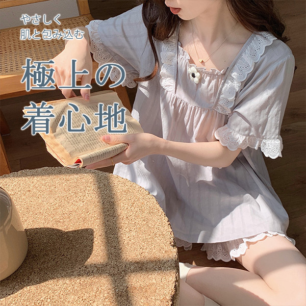 パジャマ 春夏 半袖 レディース 上下セット 無地 花 ゆったり ルームウェア ショートパンツ セットアップ ナイトウェア お洒落 部屋着 母の日