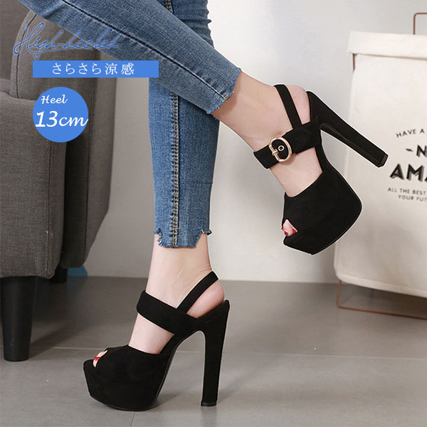 サンダル レディース 歩きやすい スナップボタン ハイヒール 美脚 ストーム ストラップ 14.5センチ シンプル 脱げない 低反発 パーティー