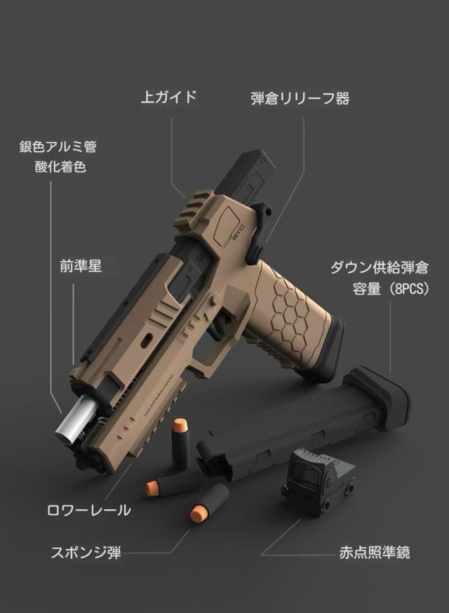 おもちゃ銃 ハンドガン トイガン 射撃 CSゲーム 連続式 連続射撃 スポンジ弾 拳銃式 ブローバックシェルおもちゃ モデルガン 男の子 女の子 玩具 室内遊び 屋外遊び 子供ギフト