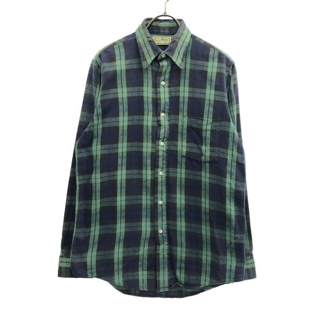 L.L.Bean エルエルビーン 80s USA製 ヴィンテージ チェック柄 長袖 コットンシャツ S グリーン系×ネイビー系 アウトドア メンズ