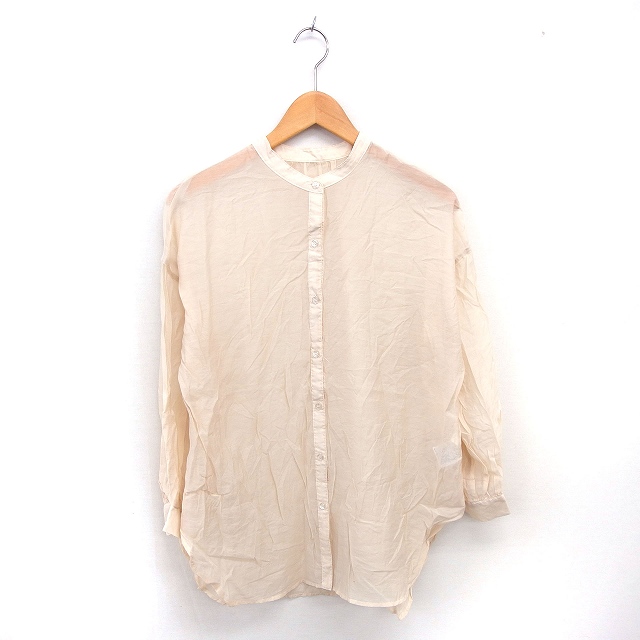 【中古】グローブ grove シャツ ブラウス シースルー 透け感 バンドカラー 薄手 長袖 M ベージュ 薄茶 /TT レディース