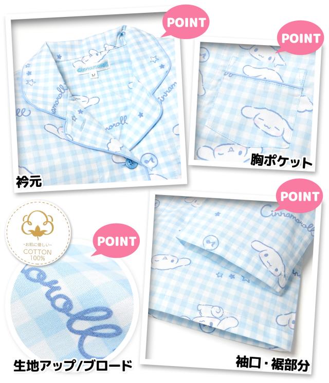 【送料無料】婦人 レディース 綿100% 長袖 テーラー パジャマ Sanrio サンリオ シナモロール 上下組 前開き ブロード生地 ポケット M L yg-2815c-sx【メール便対応】