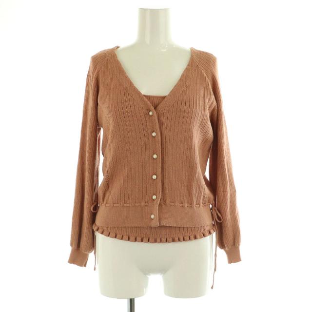 【中古】ウィルセレクション フリル コットンパールボタン アンサンブル ニット カーディガン タンクトップ M