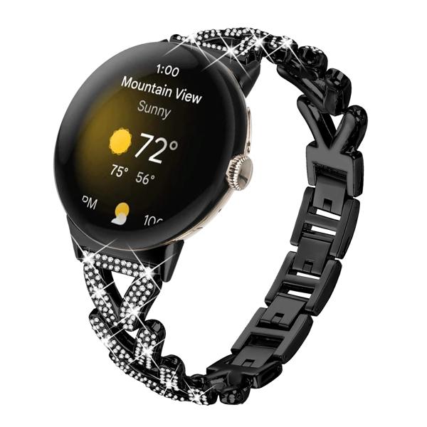 Google Pixel Watch用ステンレススチールウォッチバンド、ダイヤモンドV字型ウォッチバンド、メタルブレスレット、2ストラップ