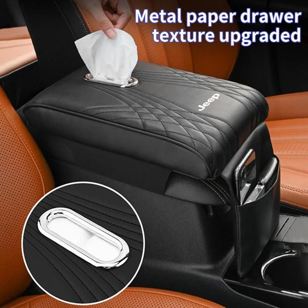 車のアームレストクッションマットティッシュボックスホルダーセンターコンソールカバーパッドジープレネゲードチェロキーコンパスパトリオットラングラーリバティ