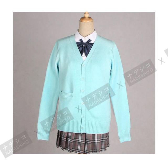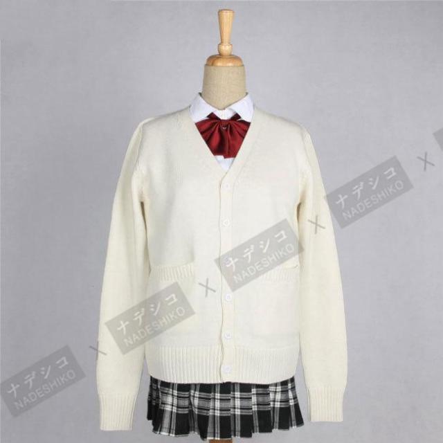 爽やかなJK制服スクール風、レディースボタン付きニットカーディガン