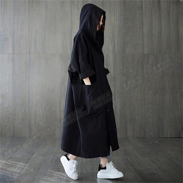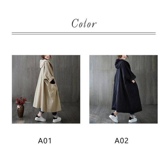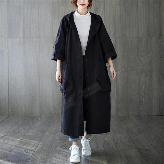 【ポイント5倍!】トレンチコート レディース ライトコート アウター ロング フード付き きれいめ オーバーサイズ 秋冬 カジュアル ファッション おしゃれ