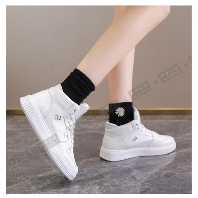 【ポイント5倍!】スニーカー レディース 厚底靴 ハイカット 防水 滑り止め 軽量 通勤通学 カジュアル 白 黒 おしゃれ