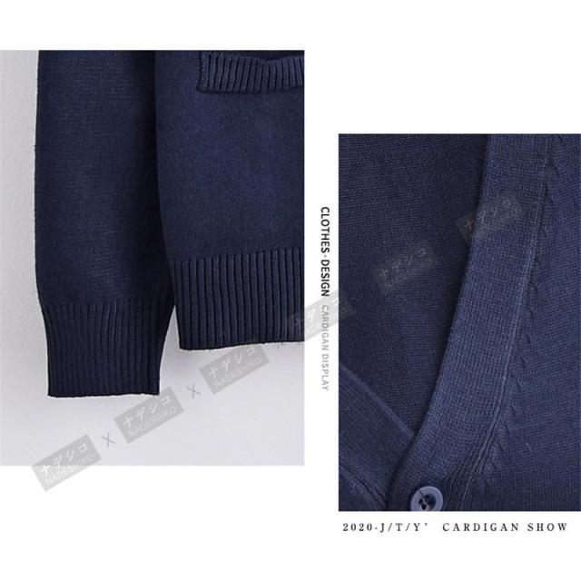 【ポイント5倍!】カーディガン レディース 長袖 通学 制服 Vネック 学生 事務服 オフィス 高校 看護師 介護 ポケットが飾り 無地 ショート丈 春 夏 秋 冬 羽織り