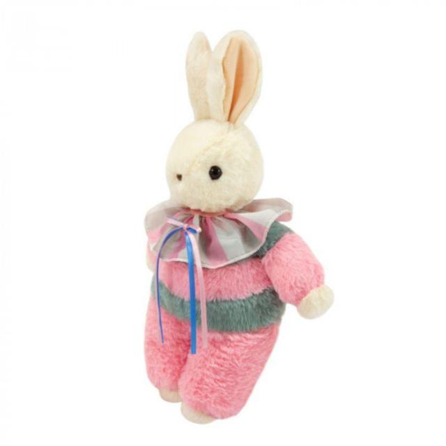 商品詳細:当時のピエロブームが反映されたうさぎさんです。くったりボディがとってもかわいい。着脱可能な襟がポイントです。 生産国:中国 素材・材質:ポリエステル 商品サイズ:高さ:22.5cm