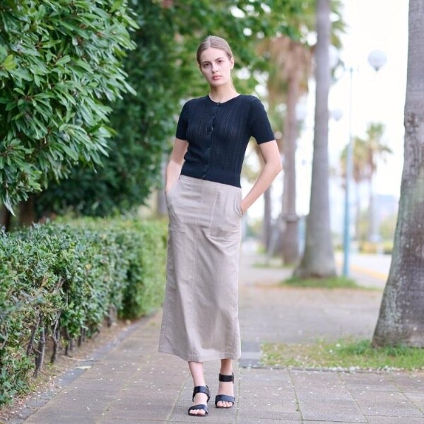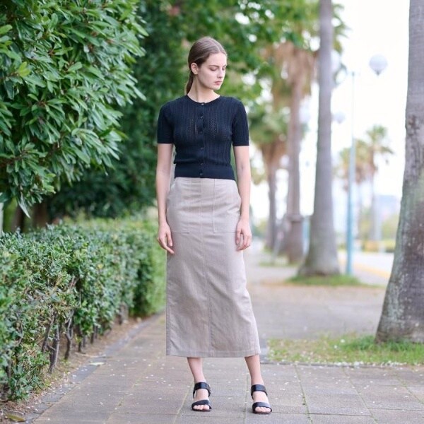 短めの丈感で、スカートとのコーディネートやワンピースの羽織としても合わせやすく着回し力◎。