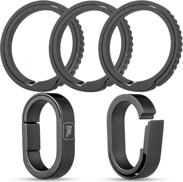 TIMULTI チタン キーホルダー キーリング カラビナ 連結用 ミニフック コネクター (ブラック・連続リング2個+サイドプ