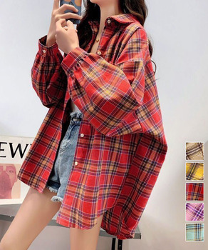 オーバーサイズ チェックシャツレディース