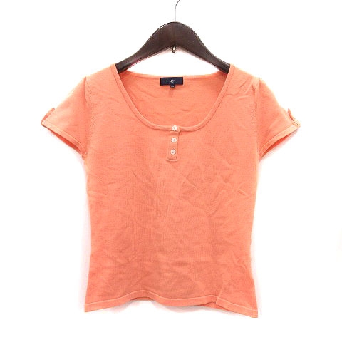 【中古】ヨンドシー 4℃ ニット カットソー Uネック 半袖 38 オレンジベージュ /MS レディース