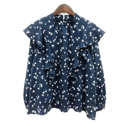 【中古】イディット IEDIT ブラウス ハイネック 花柄 長袖 フリル M 紺 ネイビー /MN レディース