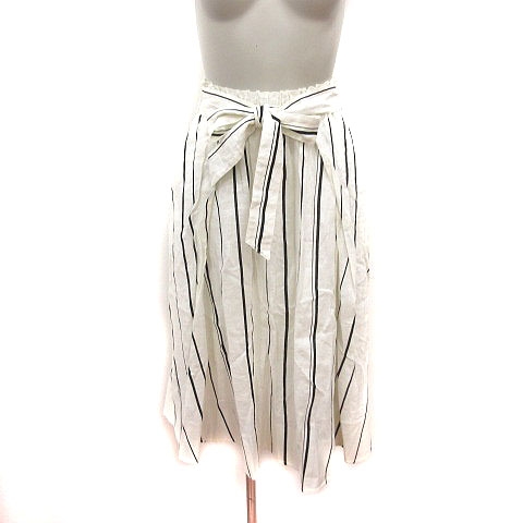 【中古】ミラオーウェン Mila Owen フレアスカート ロング 麻 リネン ストライプ ウエストマーク 0 白 黒 レディース