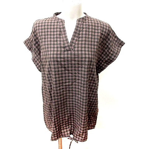 【中古】ジャバ JaVa シャツ ブラウス 半袖 チェック M 茶 ブラウン /RT レディース