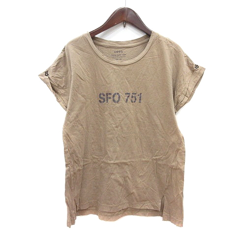 【中古】コーエン coen カットソー Tシャツ クルーネック プリント 半袖 ロールアップ F ベージュ /MN レディース