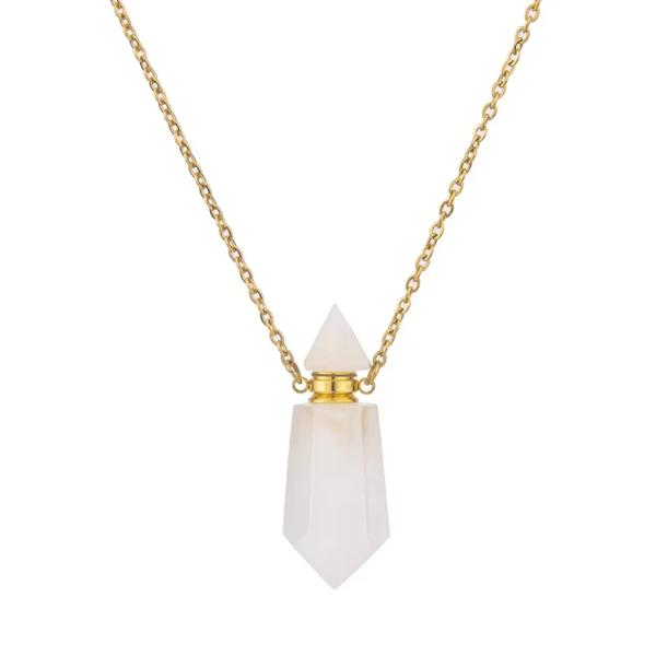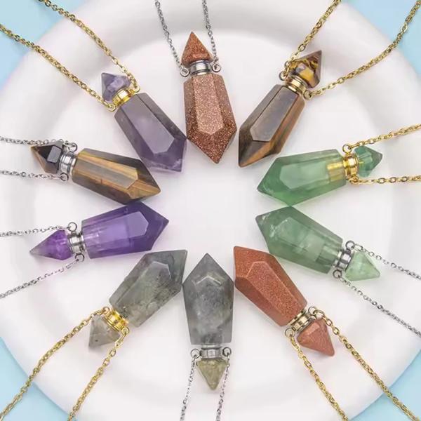 天然クリスタルダイヤモンド香水瓶ペンダントネックレス,女性用,アロマテラピー,ヒーリングジェムストーン,ステンレス鋼