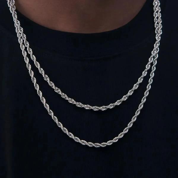 男性と女性のための925スターリングシルバーネックレス,ヒップホップツイストチェーン,ロックジュエリー,トレンディなアクセサリー,卸売り,3mm, 16〜30インチ