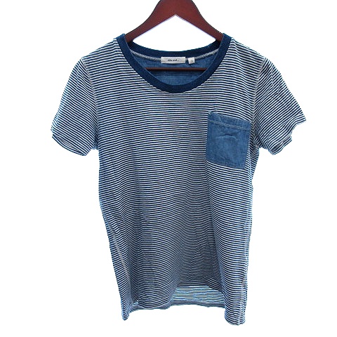 【中古】ニコアンド Niko and.. カットソー Tシャツ ニット ラウンドネック パイピング ボーダー 半袖 M 青 ブルー