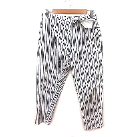 【中古】ルールマラン LOURMARIN テーパードパンツ ストライプ ウエストリボン 2 紺 白 レディース