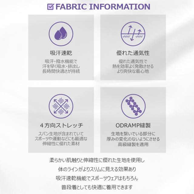 吸汗撥水機能を備えており、汗を素早く吸収し、さらっとした状態をキープします。
