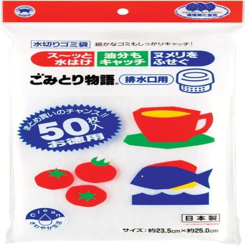 ボンスター 水切りゴミ袋 ごみとり物語 排水口用 スーっと水はけ 油分もキャッチ ヌメリをふせぐ お徳用 50枚入り