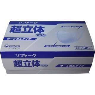 ユニチャーム ソフトーク超立体マスク 三層プロタイプ ふつうサイズ (100枚箱入り)●3層構造の99%高密度カットフィルターでバリア性に優れた「サージカル」グレードマスク。 ●プリーツタイプやガーゼマスクと比較してスキマが少ない「超立体構造」 ●息苦しくない「口元空間」しゃべりやすく、口紅移りが少ない ●タテ・ヨコに伸びる幅広不織布で耳が痛くなりにくい ●安心の日本国内産。