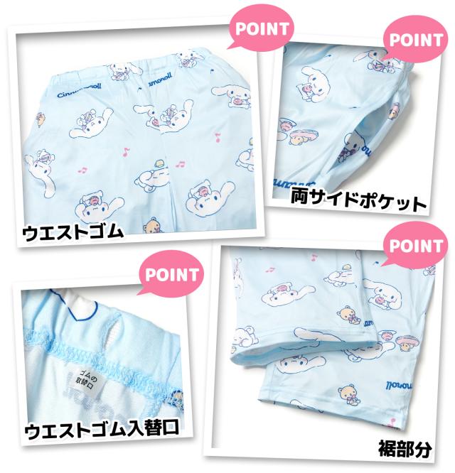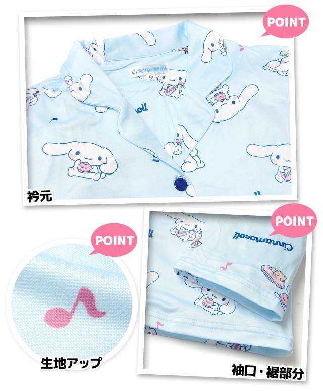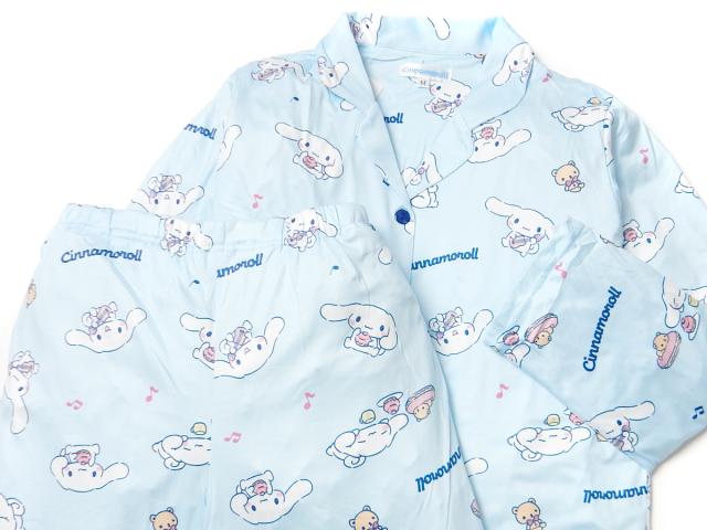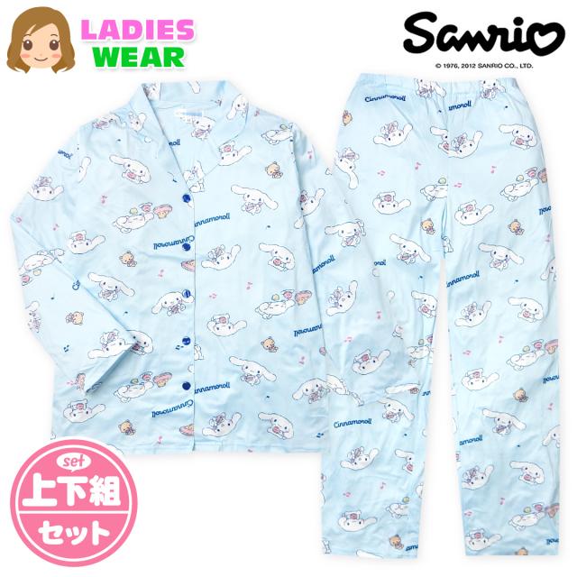 【送料無料】婦人 レディース パウダーストレッチ 長袖 テーラー パジャマ Sanrio サンリオ シナモロール 上下組 前開き ポケット M L yg-2817b-sx【メール便対応】