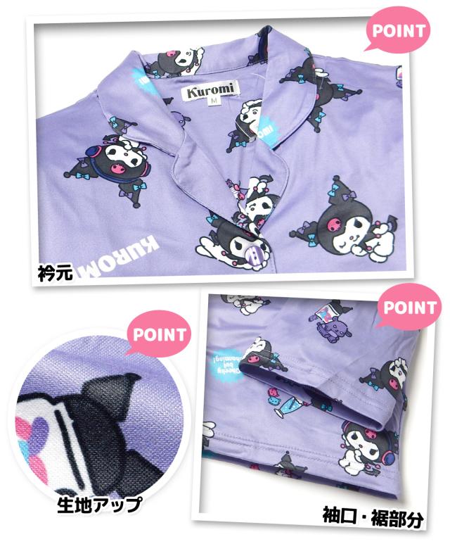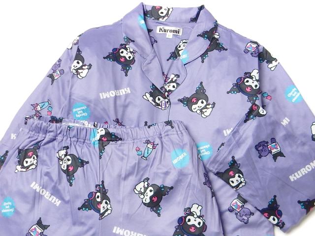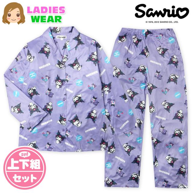 【送料無料】婦人 レディース パウダーストレッチ 長袖 テーラー パジャマ Sanrio サンリオ クロミ 上下組 前開き ポケット M L yg-2818a-pp【メール便対応】