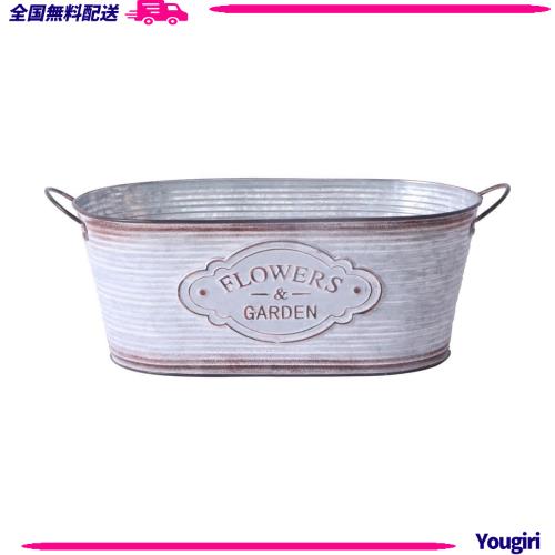 ◆商品名:ベストコ 鉢 オーバル ポット L 小物入れ プラカップ付 水抜き穴 ブリキ NE-734 フラワーズガーデン