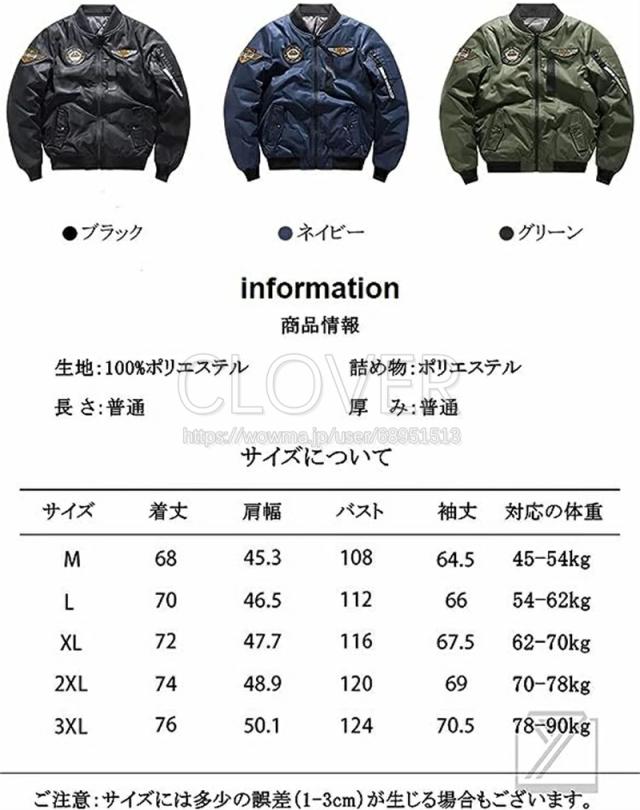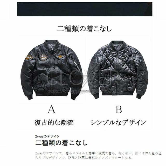 フライトジャケット MA-1 メンズ アウター ミリタリージャケット 2way 中綿 厚手 防風 防寒秋冬春服 大きいサイズ M-3XL スタジャン コート