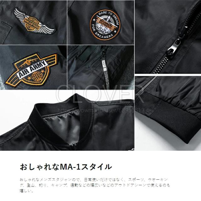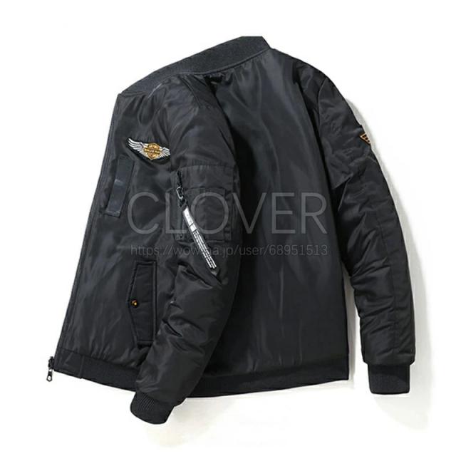 [おしゃれなMA-1スタイル] かっこいいma-1フライトジャケットは今年のトレンド。フライトのワッペンや刺繍の飛行機でカスタムを加えたメンズジャケット。ボタン付き両側のポケット、裏ポケットと袖ポケットはスマートフォンなどの小物を入れておくことも可能があります。